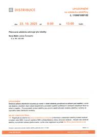 Upozornění na odstávku elektřiny dne 23.10.2025 od 8:15 do 10:45 hodin