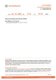 Upozornění na odstávku elektřiny dne 22.10.2025 od 8:15 do 14:15 hodin