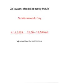Odstávka elektřiny na zdravotním středisku v úterý 4.11.2025 od 12:00 - 13:00 hod.