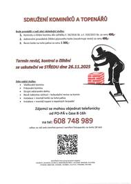 Sdružení kominíků a topenářů bude provádět v naší obci ve středu 26.11.2025 kontroly a čištění komínů