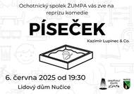 Ochotnický spolek ŽUMPA zve na reprízu jednoaktové komedie Píseček. Uvedena bude v pátek 6. června od 19:30. Představení je koncipováno jako vzpomínka na našeho zakladatele, režiséra, herce a autora Josefa Magulu, který nás znenadání opustil před deseti lety v červenci 2015. Vstupné dobrovolné.