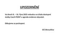 Upozornění - POZOR změna!: Vývoz popelnic NEPROBĚHNE výjimečně v pátek 27.12.2024 z důvodu vysoké nemocnosti zaměstnanců FCC Dačice (svozové společnosti), ale až v pátek 3.1.2025! OÚ Okrouhlice