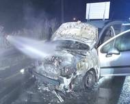 Plameny zcela pohltily osobní auto, dálnice na Prahu stála