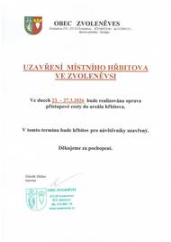 UZAVŘENÍ HŘBITOVA VE ZVOLENĚVSI
