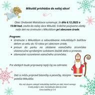 Obec Ondavské Matiašovce oznamuje, že dňa 6.12.2025 o 15:00 zavíta do našej obce Mikuláš. Srdečne pozývame všetky naše deti na stretnutie s Mikulášom pri obecnom úrade. Bližšie info na plagáte.