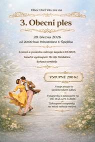 Starosta obce Orel svolává veřejné zasedání obecního zastupitelstva na úterý 3. 3. 2026 v 19:00 hod. v zasedací místnosti obecního úřadu v Orli.