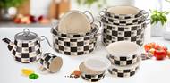 Designová kolekce ŠACHOVNICE zahrnuje zajímavé smaltované kousky, které mají dlouhou životnost a výrazný design, jenž osvěží mnohdy monochromatické ku