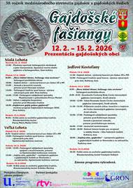 Obce Malá Lehota, Veľká Lehota a Jedľové Kostoľany pozývajú v dňoch 12.02. - 15.02.2026 na gajdošské fašiangy a fašiangovú zábavu. Bližší program nájdete v priloženom plagáte.