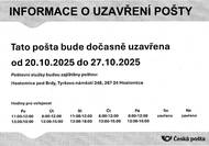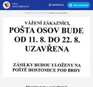 Pošta Partner Osov bude v termínu 22. – 26. 9. 2025 uzavřena - čerpání dovolené.