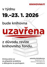 Milí čtenáři, v týdnu 19.1.-23.1. 2026 bude knihovna uzavřena z důvodu revize knihovního fondu.