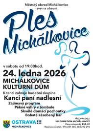 Městský obvod Michálkovice vás srdečně zve na tradiční obecní ples. 📅 Sobota 24. ledna 2026 🕖 od 19:00 📍 Kulturní dům Michálkovice 🎶 K tanci a poslechu hraje Kanci paní nadlesní 🎁 Tombola a zajímavý program 🍰 Domácí pochoutky 🍷 Bohatě zásobený bar 🎟️ Vstupné 250 Kč 📞 Rezervace: 596 231 565 | 604 212 296 👉 Těšíme se na vás!