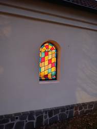 Nová okna a dveře v kapličce - vitrážová skla. Na tuto akci jsme získali 90 % finanční dar, kterého si velmi vážíme.