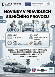 Sledujete každoroční novinky v silničním provozu? Nebo si v některých situacích na cestách nejste úplně jistí, jak správně reagovat? Přijďte na besedu s krajským koordinátorem BESIPu! Probereme aktuality, vysvětlíme nejasnosti a odpovíme na vše, co vás v dopravě pálí.