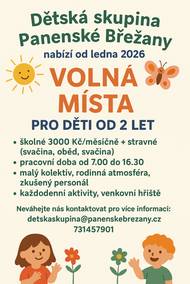 Od 12. do 23. května 2025 bude Dětská skupina Panenské Břežany přijímat žádosti o umístění dítěte do péče.