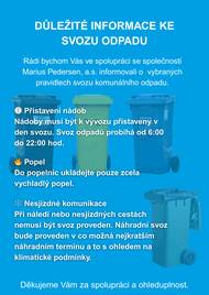 Z důvodu poruchy svozového vozidla proběhne svoz směsného odpadu zítra 1. 7. brzy ráno. Nechte prosím nádoby venku. Děkujeme