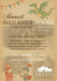 V pátek 27. září 2025 se v době od 10 do 18 hodin uskuteční Slavnosti Hradu Kunzov, které oslaví 117 let od založení hradu. Program zahrnuje rytířské souboje, jízdu na koni, malování na obličej a další atrakce. Návštěvníci se také mohou těšit na stánky s dobovým zbožím a jídlo z grilu.