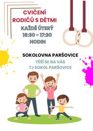 Cvičení rodičů s dětmi se bude konat každé úterý od 16:30 do 17:30 hodin v sokolovně. Informujeme Vás, že dne 28.10.2025 cvičení není z důvodu státního svátku, děkujeme za pochopení, TJ Sokol Paršovice.