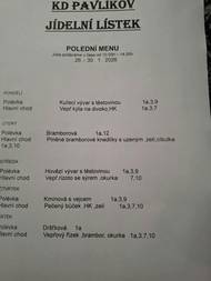 Jídelní lístek KD Pavlíkov na 22.12.2025 a 23.12.2025