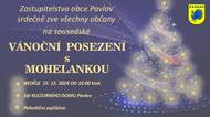 Zastupitelstvo obce Pavlov srdečně zve všechny občany na SOUSEDSKÉ POSEZENÍ S MOHELANKOU, které se koná v NEDĚLI 15. 12. 2024 v SÁLE KD PAVLOV od 16:00. Pohoštění zajištěno.