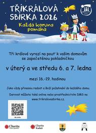 Tři králové vyrazí na pouť k vašim domovům se zapečetěnou pokladničkou v úterý a ve středu 6. a 7. ledna. Bližší informace viz. plakát.