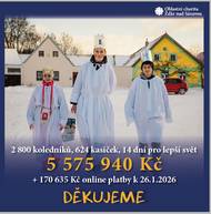 Před 1 měsícemPoděkování tříkrálová sbírkaMilí tříkráloví asistenti, ročník letošní sbírky je ukončen. I letos se nám podařily velké věci a nedošlo k nepříjemnostem a úrazům. Sice některé oblasti potrápila chřipková epidemie, ale i tak jsme spokojeni v cíli. ❤ V letošním roce jsme společně vykoledovali úžasných 5 575 940 Kč, což je oproti loňskému roku nárůst o 235 951 Kč. Proto bych Vám chtěla velmi poděkovat za spolupráci, nasazení i obětavost v nelehkých chvílích. Zároveň mé poděkování patří i Vašim rodinám, bez jejichž trpělivosti by to také nešlo. Děkuji a těším se na další spolupráce. PS: Zároveň přijměte pozvání na mši svatou ve Žďáře nad Sázavou, která bude sloužena za charitu a tříkrálové koledníky a asistenty ve čtvrtek 29. ledna v 18.00 v kostele sv. Prokopa s o. Jiřím Kaňou. Veronika Dobrovolná koordinátorka Tříkrálové sbírky v okrese Žďár nad Sázavou koordinátorka veřejných akcí pastorační asistentka Oblastní charita Žďár nad Sázavou