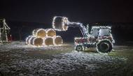 Na poli u Těšínova na Českobudějovicku stojí netradiční adventní atrakce, která zdatně konkuruje i vánočním trhům v městských centrech. Místní farmář Václav Kocina tu rozsvítil svůj tradiční vánoční traktor s balíky slámy – světelnou instalaci, jež se během pár let stala fenoménem nejen blízkého okolí.
