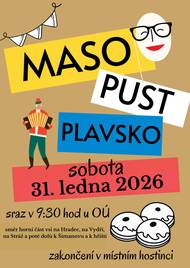 Obec Plavsko srdečně zve všechny občany na tradiční masopustní průvod obcí, plný masek, hudby a dobré nálady. Přijďte si užít společné setkání a zachovat krásnou lidovou tradici. Podrobné informace naleznete na přiloženém plakátu. Těšíme se na vás! 😊