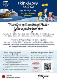 Charita Jindřichův Hradec pořádá letošní Tříkrálovou sbírku v obcích: Pluhův Žďár - od 6. 1. 2026 dále (MŠ Pluhův Žďár) Jižná - 7. 1. 2026 Samosoly - 9. 1. 2026 Klenov - 10. 1. 2026 a dle možností koledníků uvidíme, zda se letos zvládne i Pohoří s Plasnou Letošní záměry Charity J. Hradec jsou: Přímá pomoc lidem v těžké životní situaci Podpora provozu Střediska pomoci Samaritán (poskytuje potravinovou a materiální pomoc). Psychoterapeutická podpora pro děti a mládež z nízkoprahů Kompas a Směr Podpora šesti registrovaných služeb Charity (Poradna pro lidi v nouzi, Sociálně aktivizační služba pro rodiny s dětmi sv. Rity, NZDM Kompas, NZDM Směr, Sociální rehabilitace sv. Markéty, Noclehárna sv. Antonína) Příměstský tábor pro děti ze znevýhodněného prostředí. Rozvoj a provoz Dobrovolnického centra
