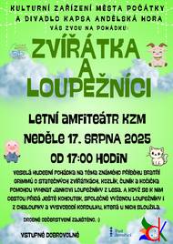 Kulturní zařízení města Počátky a Divadlo Kapsa Andělská hora vás zvou na pohádku ZVÍŘÁTKA A LOUPEŽNÍCI V neděli 17. srpna 2025 od 17:00 hodin letní amfiteátr KZM Počátky. Vstupné dobrovolné. Drobné občerstvení zajištěno.