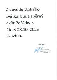 Z důvodu státního svátku bude sběrný dvůr Počátky v pondělí 17. listopadu UZAVŘEN.