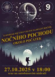 Kulturní zařízení města Počátky Vás zve na Noční hru. Odvážný konec prázdnin v Počátkách! Dobrodružná stezka v historickém centru Počátek. Čeká na vás plnění řady úkolů a překvapení na trase stezky. Sobota 30. srpna 2025 Registrace od 17:00 do 18:30 hodin děti MŠ a první stupeň pro ostatní po dobu noční hry v Sokolovně diskotéka. Start: 19:00 hodin Občerstvení zajištěno. Vstupné dobrovolné.