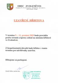 Uzavření hřbitova ve Zvoleněvsi 9. 12. - 11. 12. 2025