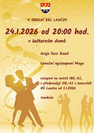 Obecní bál Lančov se koná 24. ledna 2026 od 20:00 hod. v kulturním domě. Na akci vystoupí Vasr Band a prezentováno bude taneční vystoupení skupiny Maya. Vstupné činí 150 Kč v předprodeji a 180 Kč na místě.
