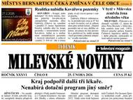 Městys Bernartice čeká změna v čele obce. „Kandidovat do zastupitelstva budu, starostu už dělat nechci,“ říká Pavel Souhrada v rozhovoru ■ Obyvatelé Milevska dostali informace o vývoji jednání kolem budoucího zásobování teplem ■ Kraj podpořil další tři lékaře. Nenabírá dotační program jiný směr? ■ Milevská ZUŠ koncertovala v Latinské škole. Přinášíme reportáž ■ Realitní kancelář nabídla Kovářovu pozemky. Potřebuje je vůbec obec? A za jakou cenu? ■ Na masopust do Držkrajova dorazili skupina Kiss i čeští olympionici ■ Ve Zbelítově se tančilo na plese a v Přeštěnici, Křenovicích i Podolí plesaly děti na maškarních karnevalech ■ V Božeticích chtějí opravit poslední neopravené křížky ■ Hokejisté Milevska doma rozcupovali suveréna z Příbrami ■ Martin Willmann je v Milevsku spokojený. Vstřelil gól svému kamarádovi, připomene mu to na dovolené v Chorvatsku ■ Brankářka Julie Pejšová napsala hollywoodský příběh. Češky ale medaili nepřivezly, stopku jim vystavilo Švédsko