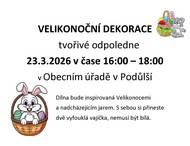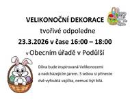 V příloze Vám přinášíme zpravodaj v elektronické podobě, jeho listinnou podobu jste obdrželi do svých schránek. Pokud někdo chcete ještě další výtisk, zastavte se na obecním úřadě, jsou k dispozici. Dále připomínáme blízké akce: - dnešní dílničky na obci viz plakát - v sobotu 25. 4. od 9:00 do 11:00 a od 13:00 do 15:00, a v neděli 26.4. od 9:00 do 11:00 bude jako pravidelně kontejner na velkoobjemový odpad přistavený v areálu zemědělské společnost (spodní vrata). Odpad je možný ukládat pouze v této době. - pravidelné čarodějnické posezení u obecínho úřadu ve čtvrtek 30. 4. 2026