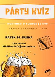 Složte tým (max. 8 hráčů, za každého člena navíc -1 bod) a připravte se na pořádnou dávku zábavy. Čeká vás 10 různorodých témat a 55 otázek, kde nechybí aktuální dění, hudební ukázky, zeměpis, sport, filmy či otázky z regionu. Startovné: 100 Kč/osoba Rezervace: info@partykviz.cz