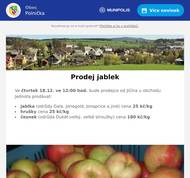 Do naší obce přijede zítra 23.10. ve 12:45 hod. soukromý prodejce od Jičína a u prodejny COOP bude prodávat jablka a hrušky v ceně 25 kč/kg Prodejce se zdrží asi 30 minut.