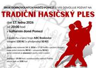Sbor dobrovolných hasičů Pomezí vás srdečně zve na TRADIČNÍ HASIČSKÝ PLES! sobota 17. ledna 2026 od 20:00 hodin Kulturní dům v Pomezí Těšit se můžete na skvělou hudbu k poslechu i tanci v podání skupiny ABC Boskovice, bohatou tombolu, výbornou kuchyni a rozmanitý výběr na baru. Vstupenky: • 10. - 11. ledna 2026 - zvaní po obci Pomezí našimi hasiči a prodej vstupenek - cena vstupenky v předprodeji 50 Kč • 14. ledna 2026 v 17:00 - předprodej místenek v hasičské zbrojnici v Pomezí - cena místenky 80 Kč (+ vstupenka 50 Kč) • vstupné na místě v den konání 130 Kč Zajištěná doprava: • v 19:30 odjezd autobusu z autobusové nádraží v Poličce a následně po všech zastávkách až k obecnímu úřadu • odjezd zpět ve 3:00 opět po zastávkách až na autobusové nádraží v Poličce Přijďte si užít večer plný zábavy, tance a dobrého jídla i pití. Těšíme se na vás! SDH Pomezí