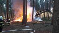 Požár v lesním prostoru ohrozil okolní les a únik provozních kapalin. Hasiči zasáhli rychle a situaci stabilizovali.