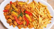Vepřová plec se žampiony žampiony a domácí hranolky