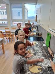 Když to voní po celé škole! Paní učitelka Ivana Stískalová naučila své žáky jak na svačinku. Nejen, že si udělali pomazánky, ale upekli i výborné housky! :)