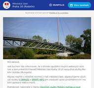 Milí občané, rádi bychom Vás informovali, že z důvodu spuštění nových webových stránek a komunikačních kanálů Městská část Praha 16 již nevyužívá služby Mobilní rozhlas (Munipolis). Abyste nepřišli o důležité novinky z naší městské části, doporučujeme využívat službu V OBRAZE a SMART INFO pro získávání zpráv prostřednictvím mobilní aplikace nebo e-mailů. Podrobnosti naleznete v článku Ukončení služby Mobilní rozhlas a nové komunikační nástroje - Oficiální stránky Městská část Praha 16. Úspěšný nový rok 2026! Městská část Praha 16