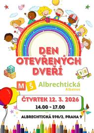 KDY: 12. března 2026 V KOLIK: od 14.00 do 17.00 hodin KDERO: Albrechtická 598/2, Praha 9 Zájemci zde získají veškeré potřebné informace k zápisu i k provozu obou pracovišť.