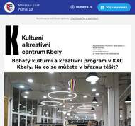 úterý 10. 2. přijďte si do EKOCENTRA PRALES (budova DŘEVÁK) vyrobit svůj jedinečný LAPAČ SNŮ, který vnese do vašeho domova klid a pohodu. WORKSHOP je vhodný pro dospělé a děti od 10 let, čas konání od 17 do 19 hodin. V ceně 400 Kč je zahrnutý materiál, pomůcky a malé občerstvení. Počet míst je omezený, rezervace možná na prales@lesy-praha.cz, tel.: 608 351 406. Více informací zde: https://lesypraha.cz/akce/lapac-snu-vyroba-kouzelneho-talismanu/ středa 11. 2. DEN OTEVŘENÝCH DVEŘÍCH v LESNÍM KLUBU CESTIČKA od 16 do 18 hodin, lesní školka s prvky Montessori s docházkou dopolední či celodenní je vhodná pro děti od 3 do 6 let. Více informací zde: http://www.spolekcesticka.cz/category/novinky/ pátek 13. 2. Městská část Praha 19 vás srdečně zva na REPREZENTAČNÍ PLES do LIDOVÉHO DOMU KBELY, začátek od 19 hodin, vstupné 400 Kč. Těšit se můžete na bohatou tombolu o hodnotné ceny, skvělou zábavu. K tanci a poslechu zahraje Band New Brand. Více informací zde: https://praha19.cz/akce/reprezentacni-ples-mc-praha-19/ sobota 14. 2. Městská část Praha 19 vás srdečně zva na DIVADÉLKO PRO DĚTI – ZVÍŘÁTKA A LOUPEŽNÍCI do KREATIVNÍHO A KULTURNÍHO CENTRA KBELY, začátek od 15 hodin, vstupné 80 Kč, viz. informace zde: https://praha19.cz/akce/divadelko-pro-deti-zviratka-a-loupeznici/ neděle 15. 2. neděle bude ve SPORTOVNÍ HALE KBELY patřit florbalu a týmu BLACK ANGELS, začátek od 9 hodin, více informací zde: https://www.sporthalakbely.cz/cs/kalendar-akci