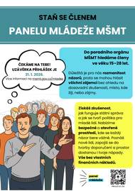 Chceš ovlivnit život mladých lidí v Česku? Ministerstvo školství, mládeže a tělovýchovy hledá nové členky a členy Panelu mládeže – poradní skupiny mladých lidí, která se podílí na tvorbě politiky mládeže a pomáhá nastavovat podporu a lepší podmínky pro mladé lidi v Česku. Pro koho: mladí lidé ve věku 15–28 let. Co tě čeká: sdílení názorů, přinášení vlastních témat, spolupráce na doporučeních pro MŠMT a zastupování mladých lidí na akcích. Doba zapojení: členství trvá 2 roky. Vše bez vlastních finančních nákladů. Uzávěrka přihlášek**: 31. ledna 2026. Podrobné informace včetně přihlášky najdeš zde: Přidej se do Panelu mládeže MŠMT