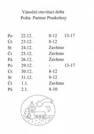 Vánoční otevírací doba na Poště Partner Praskolesy