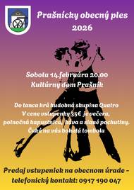 Před 1 měsícemPrašnícky obecný ples 2026Obec Prašník Vás pozýva na Prašnícky obecný ples, ktorý bude 14. 2. 2026 v KD Prašník. Predpredaj vstupeniek je počas pracovných hodín obecného úradu.