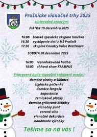 Před 1 měsícemPrašnícke vianočné trhy 2025Obec Prašník spolu s miestnymi organizáciami Vás srdečne pozývajú na Prašnícke vianočné trhy 2025, ktoré budú v dňoch 19. - 20. decembra 2025 pred Obecným úradom Prašník.