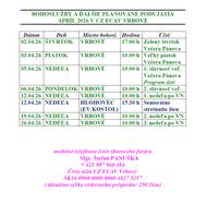 Před 4 měsíciOznam CZ ECAV VrbovéVážení cirkevníci, dovoľujeme si Vám oznámiť, že v zmysle Uznesenia Zborového konventu č. 1/XII/2024 zo dňa 22.12.2024 je cirkevný príspevok od 01.01.2025 vo výške 25 EUR/člen. Cirkevný príspevok môžete uhradiť: · na bankový účet cirkevného zboru ECAV Vrbové (SK16 0900 0000 0000 4827 5257), kde do poznámky prosím uveďte meno a adresu člena cirkevného zboru, za ktorého príspevok uhrádzate · do pokladne na farskom úrade po telefonickom dohovore s bratom farárom (0907 960 484) · do pokladne každú nedeľu od 09:30 v zborovej sieni pokladníčke sestre Bajcarovej · alebo na Obecnom úrade Prašník sestre Darine Blanárikovej