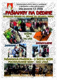 Komisia pre kultúru, šport, mládež a vzdelávanie v spolupráci s Obecným úradom Pravenec Vás pozýva na tradičný Fašiangový sprievod, ktorý sa uskutoční 07.02.2026.